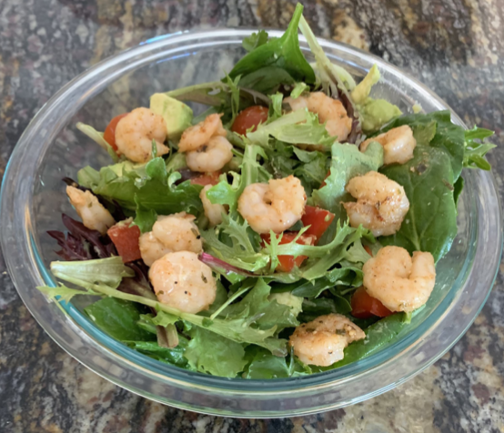 Gently fold in shrimp and serve over arugula sprinkled with a little olive oil